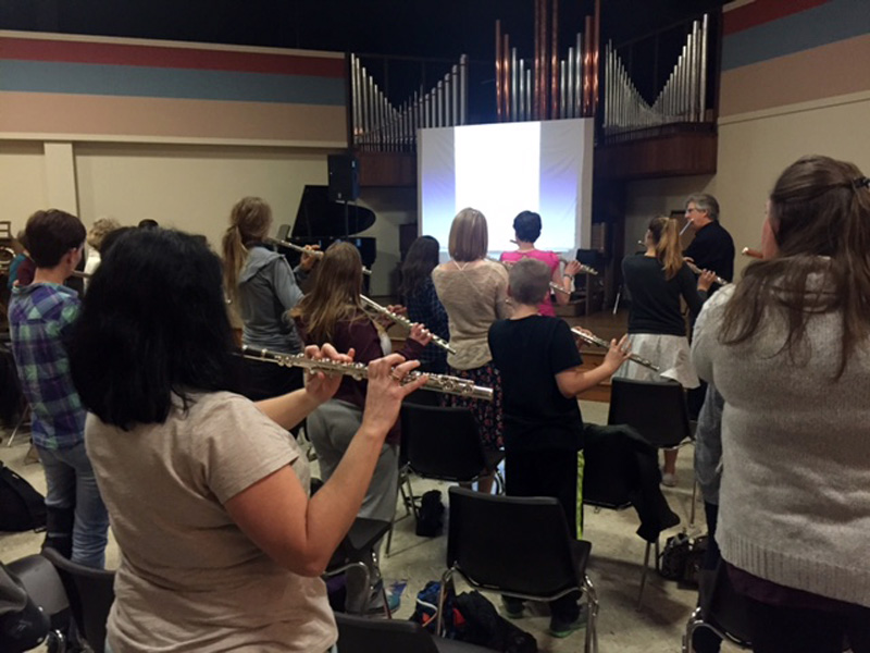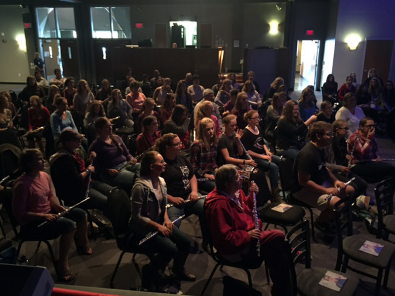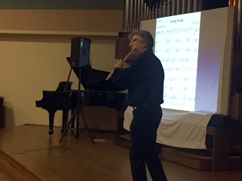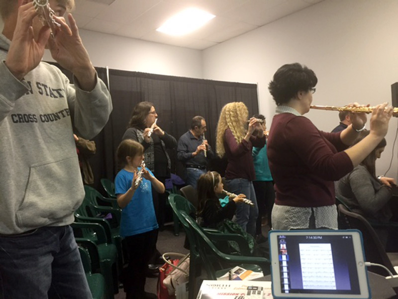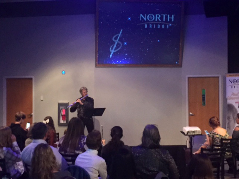 Our farewell show in Camp Hill, PA drew over 110 flutists (and a couple of Super Heroes) to play along with Paul. Thanks to Bob Warfield and Molly Shortridge for all of the hard work and promotion leading up to the event. It was exciting to see a Sea of Flutists as we shot pictures from the sound booth. It was just as exciting to share an evening with Bob and Molly at the Lancaster Brew House after the show.