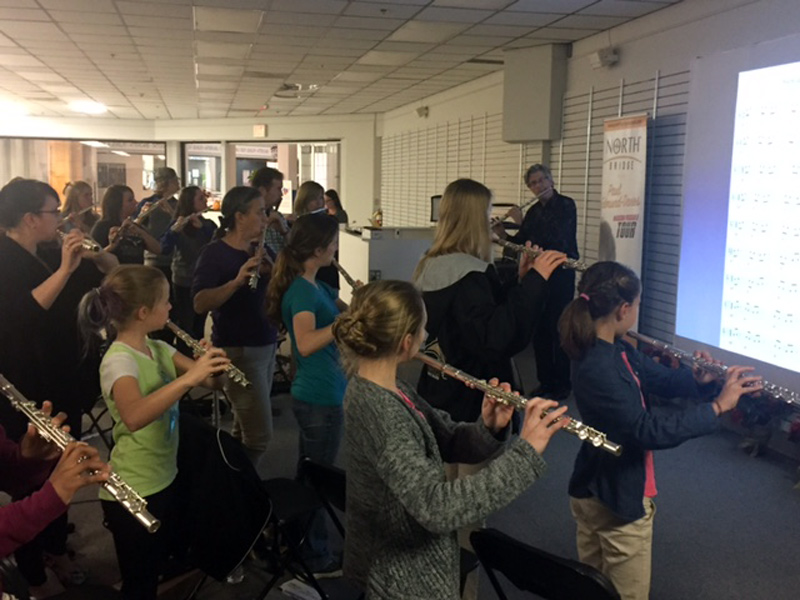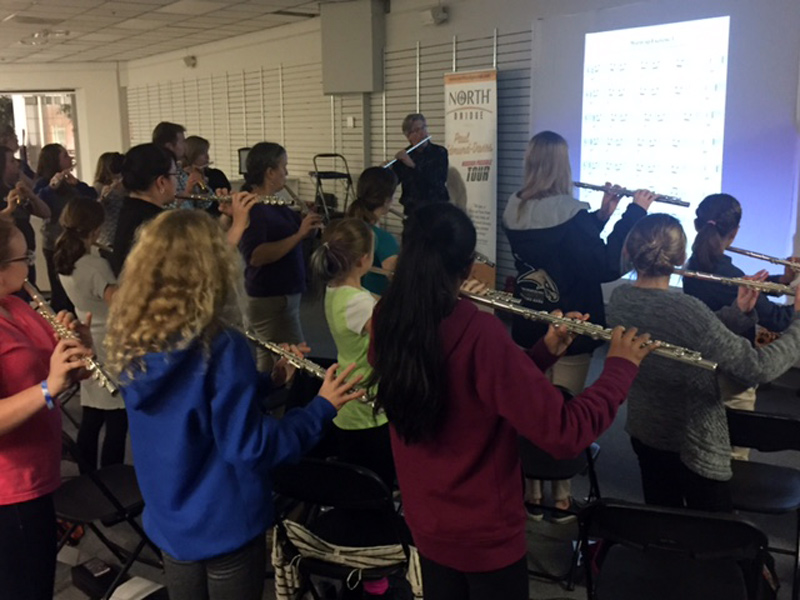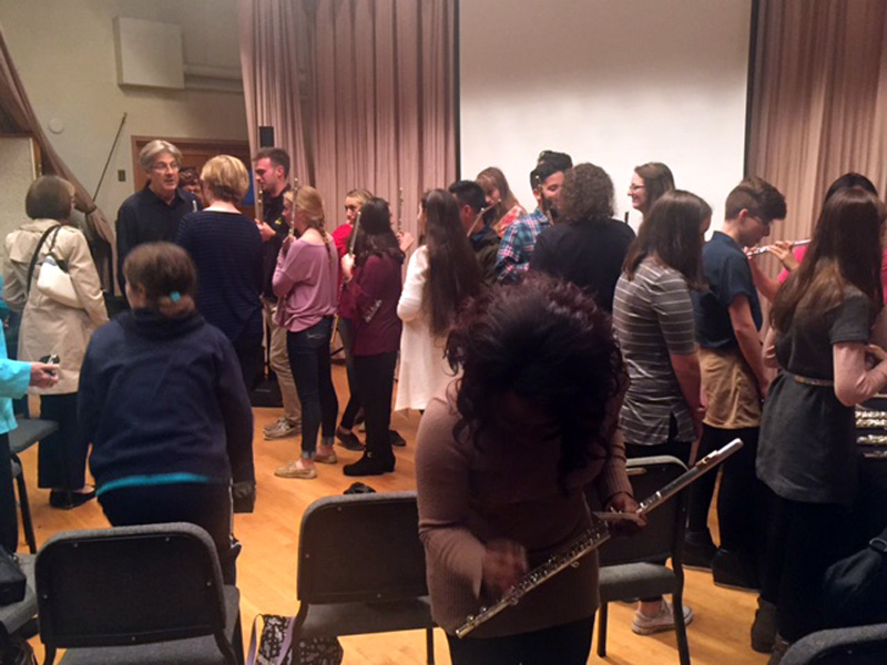 After a traditional Halloween in Harvard, Mass complete with pumpkin carving, "Trick or Treating" on the Harvard common, a Haunted House at the UCC church, and snacks at the Harvard General Store, we departed for Wilkes Barre, PA - - - where over 60 flutists showed up to join us in kicking off the MP3 tour. The Mountain View School even brought a tour bus full of students. Fun was had by all. See you tomorrow in Horseheads, NY. Thanks to Doug, Bill, Peter and the entire gang in Wilkes Barre for all of their support.