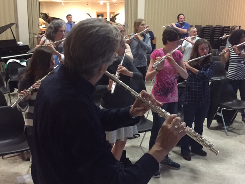 Here are some shots from last night's show in Horseheads, New York, a beautiful town near the Finger Lake region. We were lucky enough to finish just in time to watch Game 7 of the World Series, albeit we had to explain the rules of baseball to Paul. Once again, Robert M. Sides Music did a wonderful job in helping us to organize and promote the event. We are of to Williamsport, PA today and are looking forward to checking out the Little League World Series location and meeting more flutists from PA.