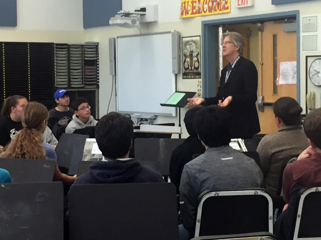 Paul Edmund-Davies stopped by Bromfield High School in Harvard, MA yesterday to deliver a surprise, impromptu presentation to the high school band, lead by the talented Mr. Craig Robbins. Good fun was had by all, and rumor has it, Paul was treated to the famous Harvard General Store coffee, and a Gibbet Hill Steak.